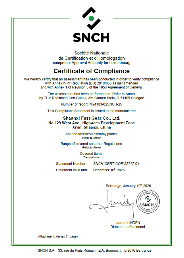 變速器歐盟認(rèn)證生產(chǎn)一致性證書