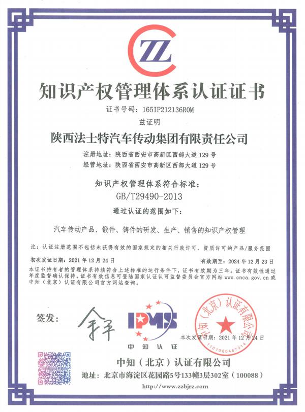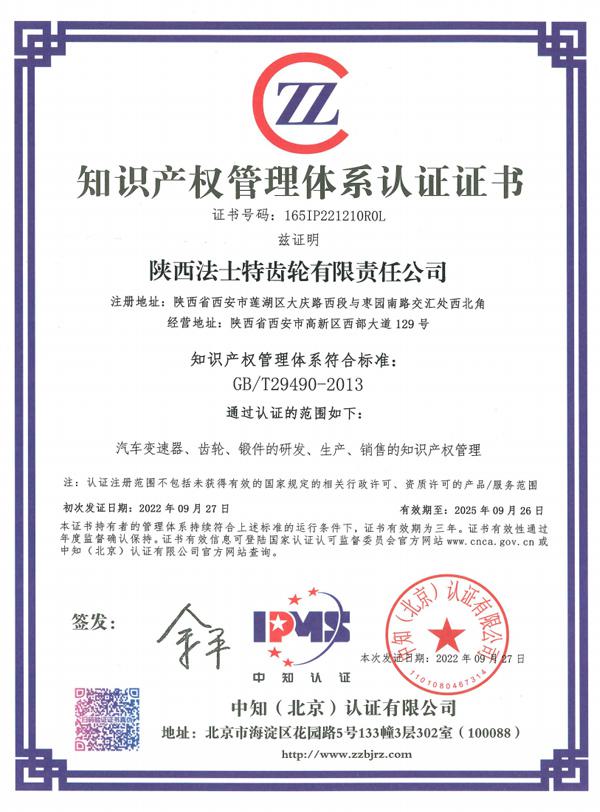知識產(chǎn)權(quán)管理體系認(rèn)證證書-陜法