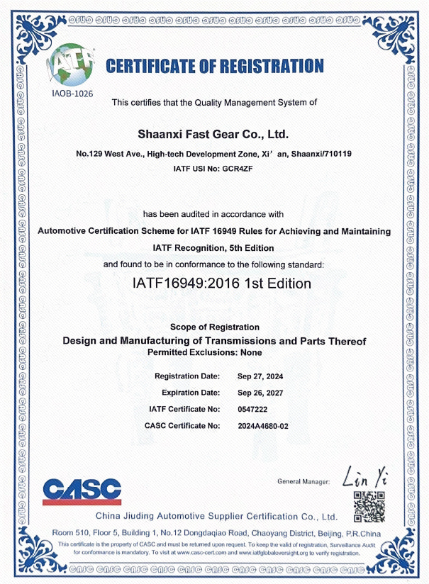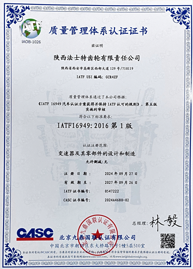 IATF16949質(zhì)量管理體系中文證書