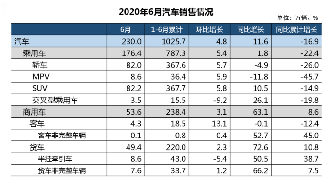 6月,我國汽車市場延續(xù)回暖勢頭,保持較好的發(fā)展態(tài)勢,汽車產銷分別完成232.5萬輛和230.0萬輛,環(huán)比分別增長6.3%和4.8%,同比分別增長22.5%和11.6%,刷新了6月產銷量的歷史新高。